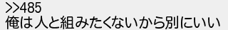 488: [sage] 2023/09/24(日) 12:21:43.99 ID:01e3Jt+0 >>485 俺は人と組みたくないから別にいい http://mevius.5ch.net/test/read.cgi/gamedev/1695087270/488