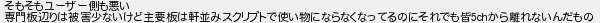 そもそもユーザー側も悪い 専門板辺りは被害少ないけど主要板は軒並みスクリプトで使い物にならなくなってるのにそれでも皆から離れないんだもの