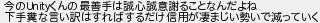 856: [sage] 2023/09/27(水) 03:35:58.74 ID:E7SyAU7I 今のUnityくんの最善手は誠心誠意謝ることなんだよね 下手糞な言い訳はすればするだけ信用が凄まじい勢いで減っていく http://mevius.5ch.net/test/read.cgi/gamedev/1695087270/856