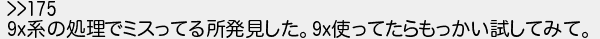 176: 170 [sage] 2007/01/14(日) 12:45:28 >>175 9x系の処理でミスってる所発見した。9x使ってたらもっかい試してみて。 http://mevius.5ch.net/test/read.cgi/unix/1168658045/176