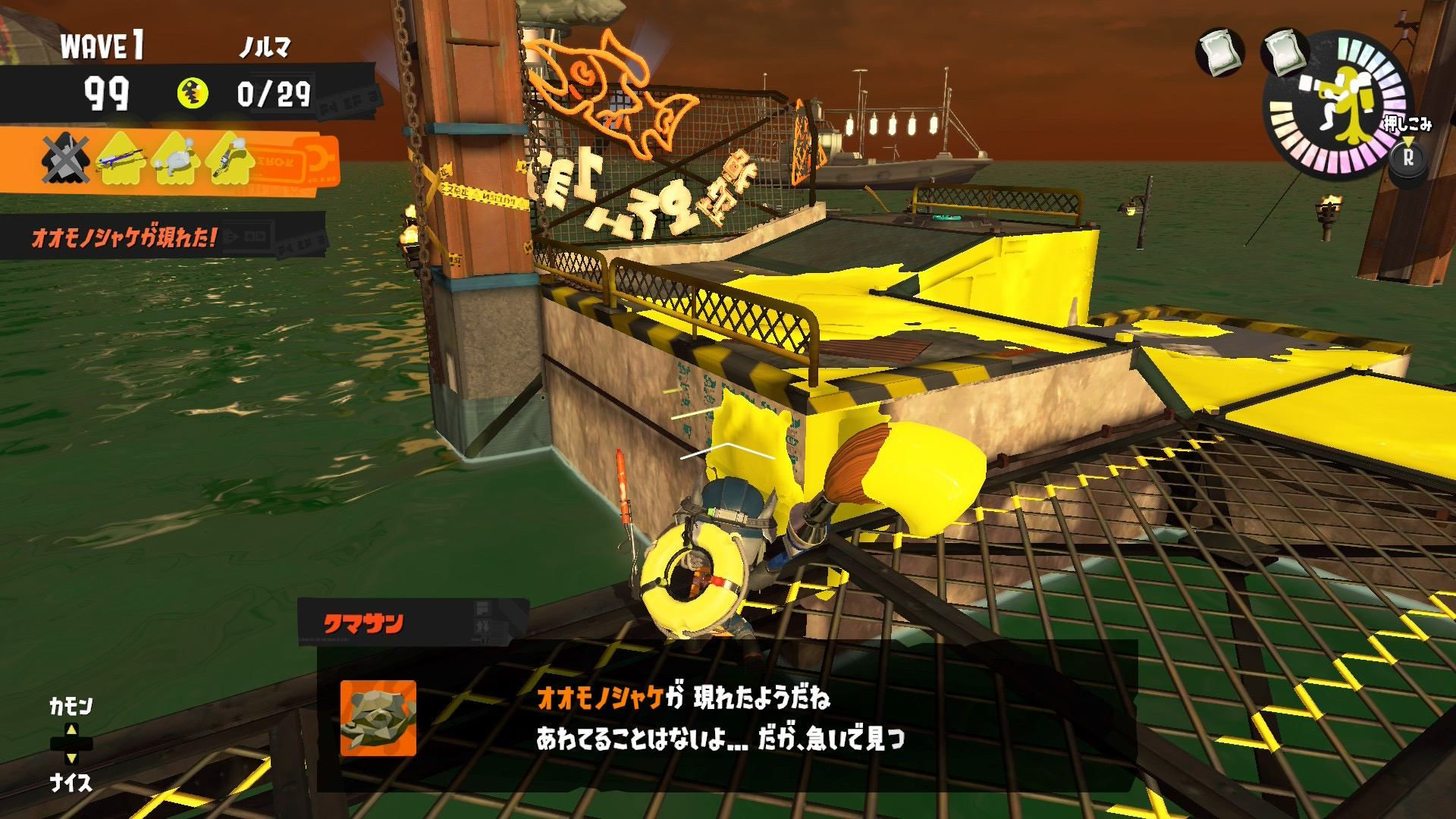ナベブタ落としで真下のシャケ押し潰そうとしてる時に