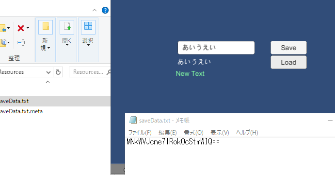 まぁ簡単にこんな感じでセーブとロードのサンプル