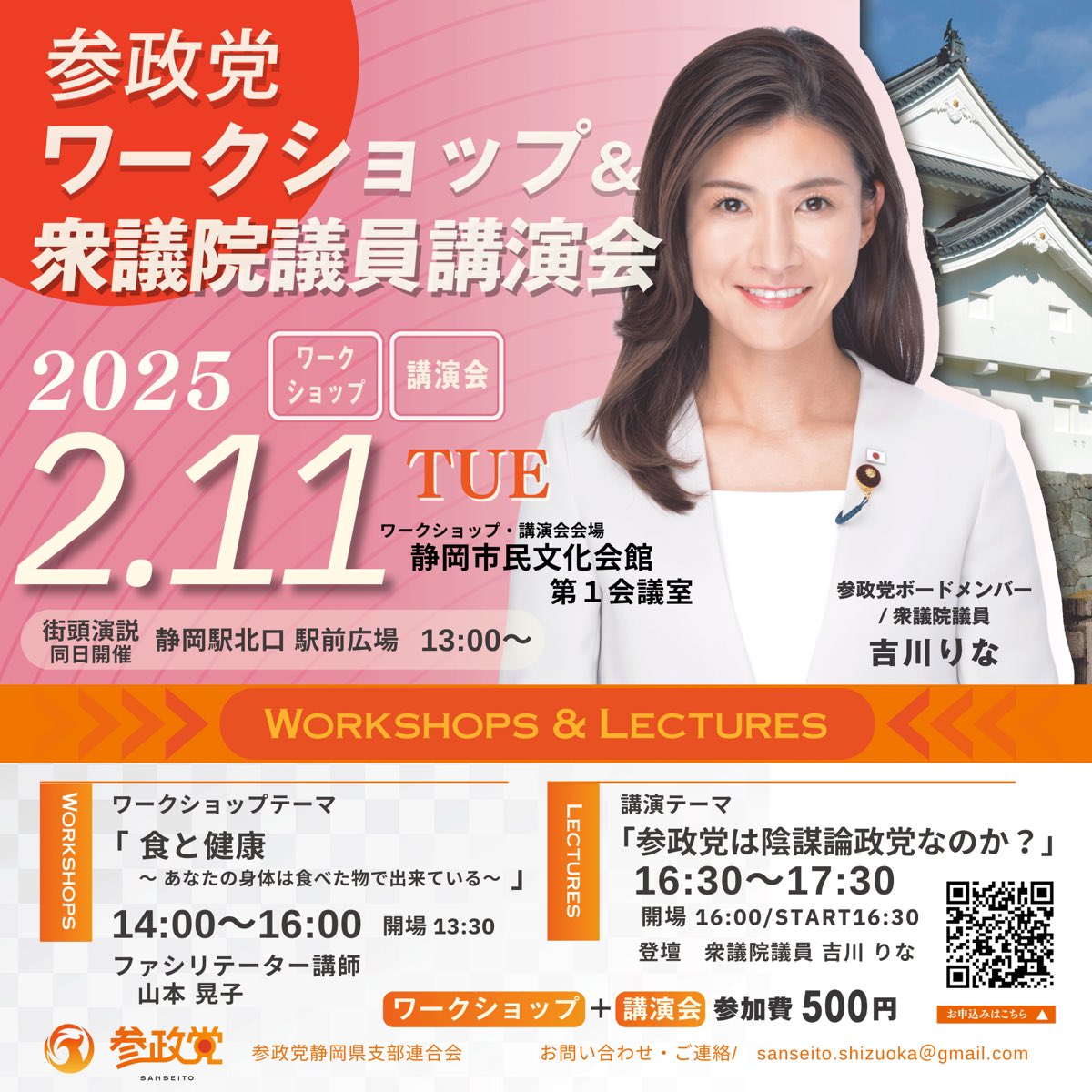 弁士:吉川りな(衆議院議員)、山本あきこ(湖西市議会議員 https://x.com/nal1ys9v79kgfre)