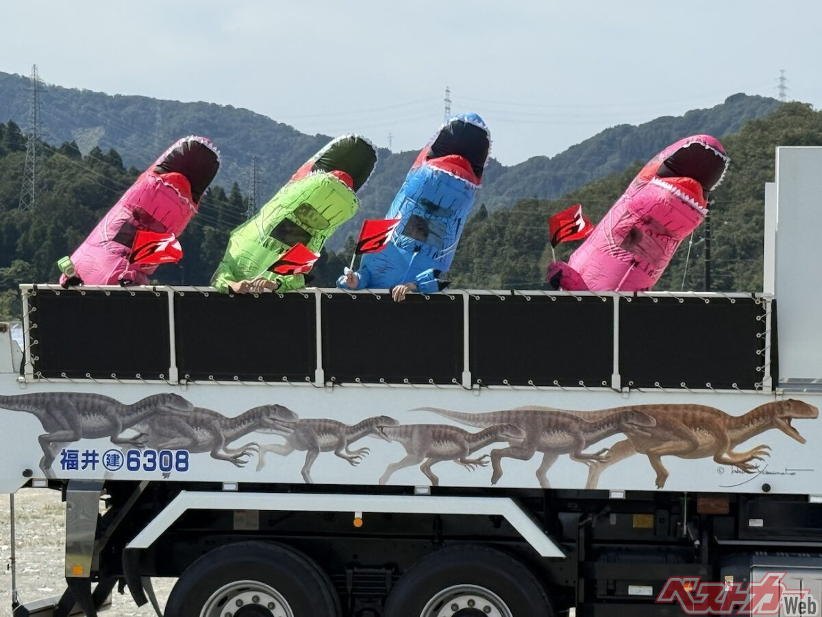 クルーがキッズから恐竜の卵をうけとりました!今日は「安全第一」で走り抜けます!