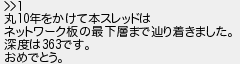 丸年をかけて本スレッドは ネットワーク板の最下層まで辿り着きました 深度はです おめでとう