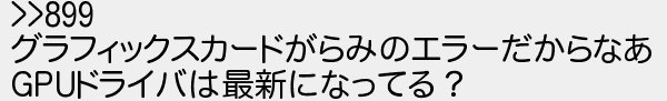 グラフィックスカードがらみのエラーだからなあ ドライバは最新になってる?