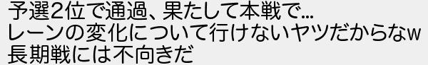 予選2位で通過果たして本戦で レーンの変化について行けないヤツだからな 長期戦には不向きだ