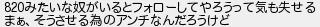 みたいな奴がいるとフォローしてやろうって気も失せる まぁそうさせる為のアンチなんだろうけど