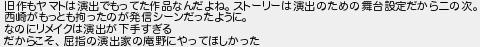 旧作もヤマトは演出でもってた作品なんだよねストーリーは演出のための舞台設定だから二の次 西崎がもっとも拘ったのが発信シーンだったように なのにリメイクは演出が下手すぎる だからこそ屈指の演出家の庵野にやってほしかった