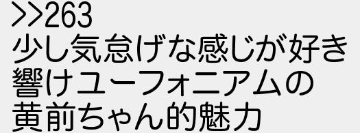 265: [sage] 2024/04/24(水) 20:52:25.27 ID:6evvQgat >>263 少し気怠げな感じが好き 響けユーフォニアムの 黄前ちゃん的魅力 http://medaka.5ch.net/test/read.cgi/animovie/1710358564/265