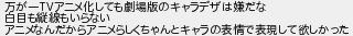 万が一アニメ化しても劇場版のキャラデザは嫌だな 白目も縦線もいらない アニメなんだからアニメらしくちゃんとキャラの表情で表現して欲しかった