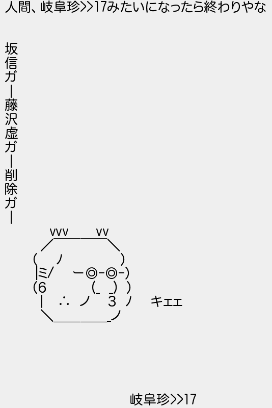 人間岐阜珍みたいになったら終わりやな 坂 信 ガ 藤 沢 虚 ガ 削 除 ガ ミ ー 6 ノ 3 キェェ ノ 岐阜珍