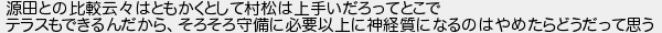 源田との比較云はともかくとして村松は上手いだろってとこで テラスもできるんだからそろそろ守備に必要以上に神経質になるのはやめたらどうだって思う