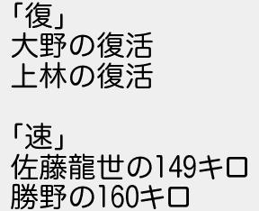 復 大野の復活 上林の復活 速 佐藤龍世のキロ 勝野のキロ