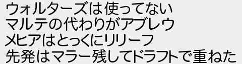 ウォルターズは使ってない マルテの代わりがアブレウ メヒアはとっくにリリーフ 先発はマラー残してドラフトで重ねた