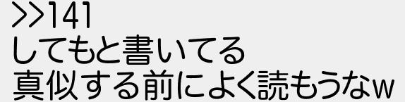 146: (ワッチョイ cf73-ruXJ [2402:6b00:fb0e:4a00:*]) [sage] 2026/02/22(日) 18:33:13.16 ID:MgCMgMeU0 >>141 してもと書いてる 真似する前によく読もうなw http://rio2016.5ch.net/test/read.cgi/base/1771663295/146