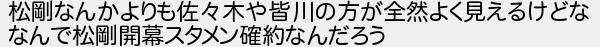 松剛なんかよりも佐木や皆川の方が全然よく見えるけどな なんで松剛開幕スタメン確約なんだろう