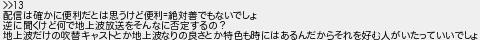 配信は確かに便利だとは思うけど便利絶対善でもないでしょ 逆に聞くけど何で地上波放送をそんなに否定するの? 地上波だけの吹替キャストとか地上波なりの良さとか特色も時にはあるんだからそれを好む人がいたっていいでしょ