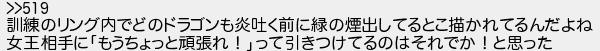 訓練のリング内でどのドラゴンも炎吐く前に緑の煙出してるとこ描かれてるんだよね 女王相手にもうちょっと頑張れ!って引きつけてるのはそれでか!と思った