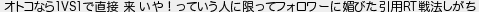 オトコならで直接 来 いや!っていう人に限ってフォロワーにびた引用戦法しがち