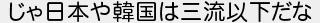 541: (庭) [sage] 2017/04/26(水) 12:46:01.56 ID:PagNw60O じゃ日本や韓国は三流以下だな http://egg.5ch.io/test/read.cgi/develop/1491221337/541