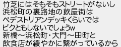 竹芝にはそもそもストリートがないし 浜松町の裏路地の飲屋街は ペデストリアンデッキくらいでは ビクともしないでしょう 新橋浜松町大門田町と 飲食店が緩やかに繋がっているから
