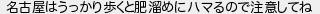 名古屋はうっかり歩くと肥溜めにハマるので注意してね