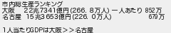 市内総生産ランキング 大阪 22兆7341億円2668万人 一人あたり 万 名古屋 15兆3653億円2260万人 万 1人当たりは大阪名古屋