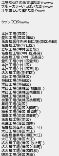 工場だらけの名古屋だぎゃ ブルーカラーいっぱいだぎゃ 汗水垂らして働くだぎゃ クッソワロタ 本社工場西区 愛知工場西区堀越 名古屋製作所矢田工場東区矢田 名古屋工場守山区 岩塚工場中村区岩塚 名古屋工場中川区長良 名古屋工場 中川区長良 愛知工場中川区愛知 本社工場中川区 本社工場中川区玉川 名古屋工場熱田区 本社工場瑞穂区 熱田工場熱田区 本社工場熱田区 本社工場瑞穂区 桃園町 本社工場瑞穂区桃園町 瑞穂工場瑞穂区 桃園工場瑞穂区桃園町 星崎工場南区 星崎工場南区大同町 粉末工場港区 竜宮町 滝春工場南区滝春町 名古屋工場南区 永徳工場港区野跡 名古屋製造所港区千年 大江工場港区大江 名古屋事業場港区大江 大江工場港区大江 名古屋工場港区 汐止町 名古屋工場港区入船町 名古屋工場港区昭和 鳴海工場緑区鳴海