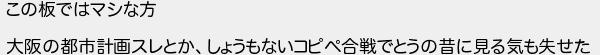 この板ではマシな方 大阪の都市計画スレとかしょうもないコピペ合戦でとうの昔に見る気も失せた