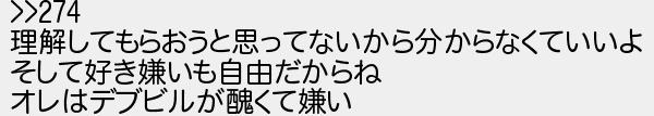 理解してもらおうと思ってないから分からなくていいよ そして好き嫌いも自由だからね オレはデブビルが醜くて嫌い