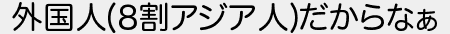 34: (庭) [sage] 2018/01/03(水) 23:23:41.86 ID:hhzKJe73 外国人(8割アジア人)だからなぁ http://egg.5ch.net/test/read.cgi/develop/1514891663/34