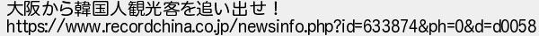 201: (やわらか銀行) [] 2019/04/25(木) 19:49:00.93 ID:IdwB0Ojf 大阪から韓国人観光客を追い出せ! https://www.recordchina.co.jp/newsinfo.php?id=633874&ph=0&d=d0058 http://egg.5ch.net/test/read.cgi/develop/1553385933/201
