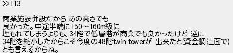商業施設併設だから あの高さでも 良かった中途半端に級に 埋もれてしまうよりも階で低層階が商業でも良かったけど 逆に 階を縮小したからこそ今度の階 が 出来たと資金調達面で とも言えるからね