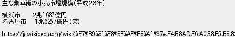 主な繁華街の小売市場規模平成26年 横浜市 2兆億円 名古屋市 1兆億円笑