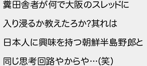 糞田舎者が何で大阪のスレッドに 入り浸るか教えたろか其れは 日本人に興味を持つ朝鮮半島野郎と 同じ思考回路やからや笑