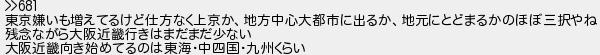 686: (東京都) [sage] 2020/03/24(火) 19:16:40.25 ID:Q8DSPtEK >>681 東京嫌いも増えてるけど仕方なく上京か、地方中心大都市に出るか、地元にとどまるかのほぼ三択やね 残念ながら大阪近畿行きはまだまだ少ない 大阪近畿向き始めてるのは東海・中四国・九州くらい http://egg.5ch.net/test/read.cgi/develop/1584462425/686