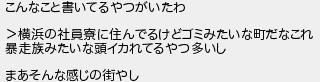 こんなこと書いてるやつがいたわ 横浜の社員寮に住んでるけどゴミみたいな町だなこれ 暴走族みたいな頭イカれてるやつ多いし まあそんな感じの街やし