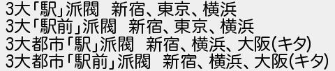 大駅派閥 新宿東京横浜 大駅前派閥 新宿東京横浜 大都市駅派閥 新宿横浜大阪キタ 大都市駅前派閥 新宿横浜大阪キタ