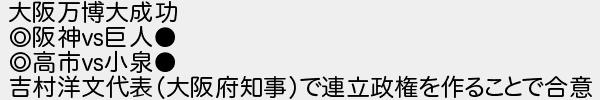 大阪万博大成功 阪神巨人 高市小泉 吉村洋文代表大阪府知事で連立政権を作ることで合意