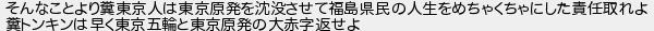 そんなことより糞東京人は東京原発を沈没させて福島県民の人生をめちゃくちゃにした責任取れよ 糞トンキンは早く東京五輪と東京原発の大赤字返せよ