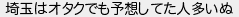 51: [sage] 2025/08/07(木) 16:56:58.07 ID:0 埼玉はオタクでも予想してた人多いぬ http://medaka.5ch.net/test/read.cgi/honobono/1754301063/51