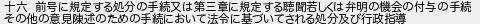 十六 前号に規定する処分の手続又は第三章に規定する聴聞若しくは弁明の機会の付与の手続 その他の意見陳述のための手続において法令に基づいてされる処分及び行政指導