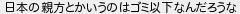 354: [sage] 2023/09/09(土) 09:40:17.44 ID:??? 日本の親方とかいうのはゴミ以下なんだろうな http://mevius.5ch.net/test/read.cgi/kitchen/1644088717/354
