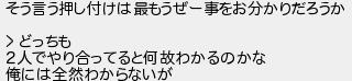 そう言う押し付けは最もうぜー事をお分かりだろうか どっちも 2人でやり合ってると何故わかるのかな 俺には全然わからないが