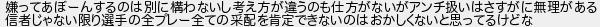 嫌ってあぼーんするのは別に構わないし考え方が違うのも仕方がないがアンチ扱いはさすがに無理がある 信者じゃない限り選手の全プレー全ての采配を肯定できないのはおかしくないと思ってるけどな