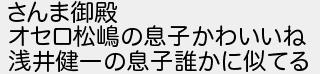 91: [sage] 2025/07/01(火) 20:04:11.55 ID:Ylcm7lbO0 さんま御殿 オセロ松嶋の息子かわいいね 浅井健一の息子誰かに似てる http://kizuna.5ch.io/test/read.cgi/ms/1750737177/91