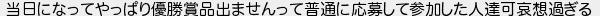 当日になってやっぱり優勝賞品出ませんって普通に応募して参加した人達可哀想過ぎる