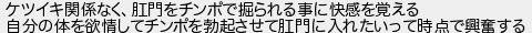 ケツイキ関係なく門をチンポで掘られる事に快感を覚える 自分の体を欲情してチンポを勃起させて門に入れたいって時点で興奮する