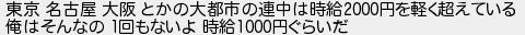 東京 名古屋 大阪 とかの大都市の連中は時給円を軽く超えている 俺はそんなの 回もないよ 時給円ぐらいだ